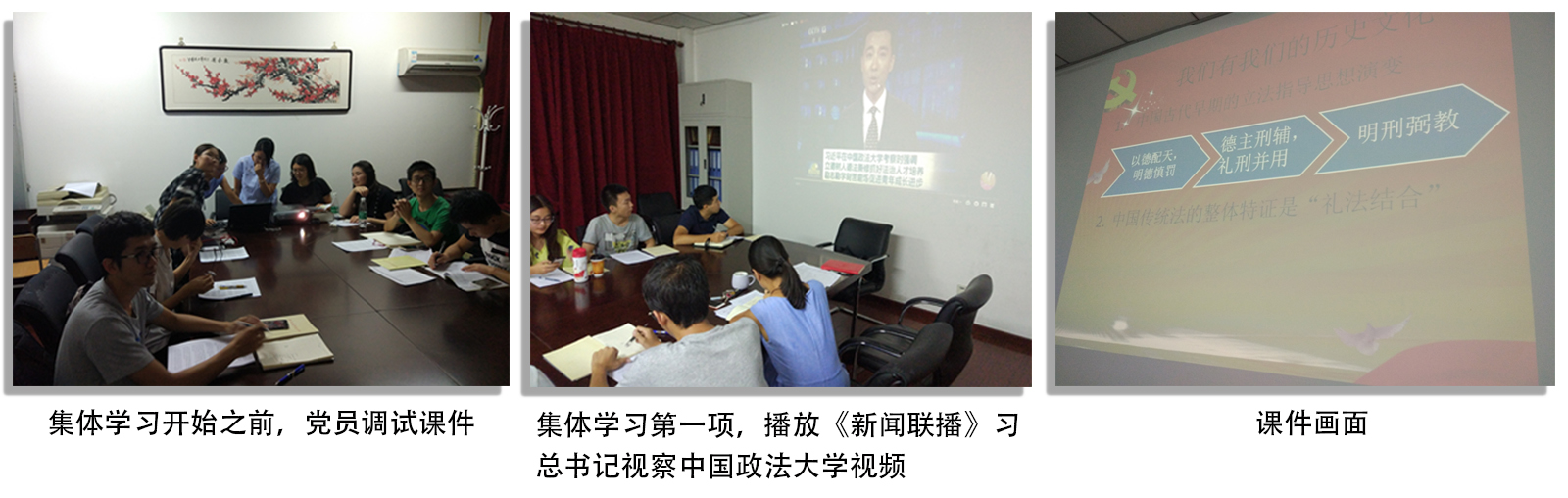 开展“两学一做”学习教育以来,人文学院法学专业学生党支部尝试了一种新的集体学习方法。他们根据学校下发的《“两学一做”学习教育选题参考》,结合自己的专业特点,选择了“习近平总书记两次视察北京重要讲话”、“习近平总书记全国高校思想政治工作会议重要讲话”、“习近平总书记考察中国政法大学重要讲话”作为本支部集体学习的选题。支部成员分为4组、每组3名同学,先是组内学习,相互探讨、查找资料、制作课件,之后在支部集体学习时3人分别讲解,讲解后大家进行讨论。