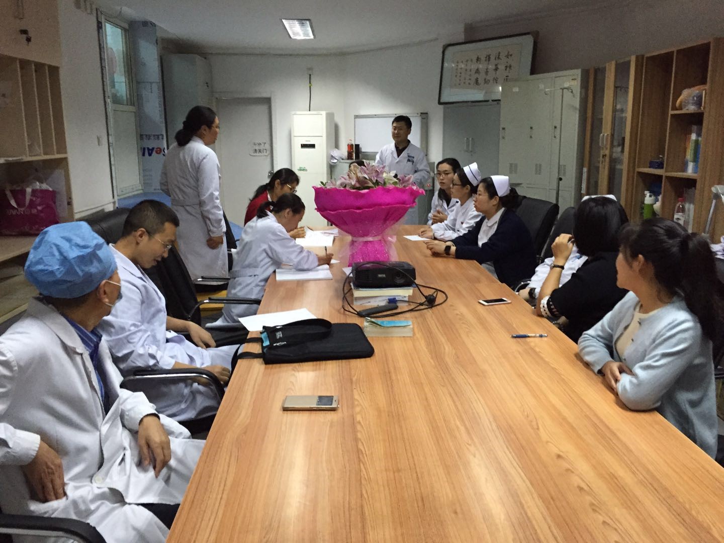 2018年4月的一个清晨,在血液肿瘤科医生办公室,身形清瘦的侯丽书记正微笑地和几位医护人员亲切地交谈,了解科室医护人员的近况和想法,鼓励大家认真学习党的十九大报告,领会精神,促进行动,以文化引领工作。“努力学习和顽强拼搏,将来不会后悔,”她说,“我们收获的将不仅是知识的丰富、工作的顺利、精神的富足,更有带给患者以及其家人的幸福!”