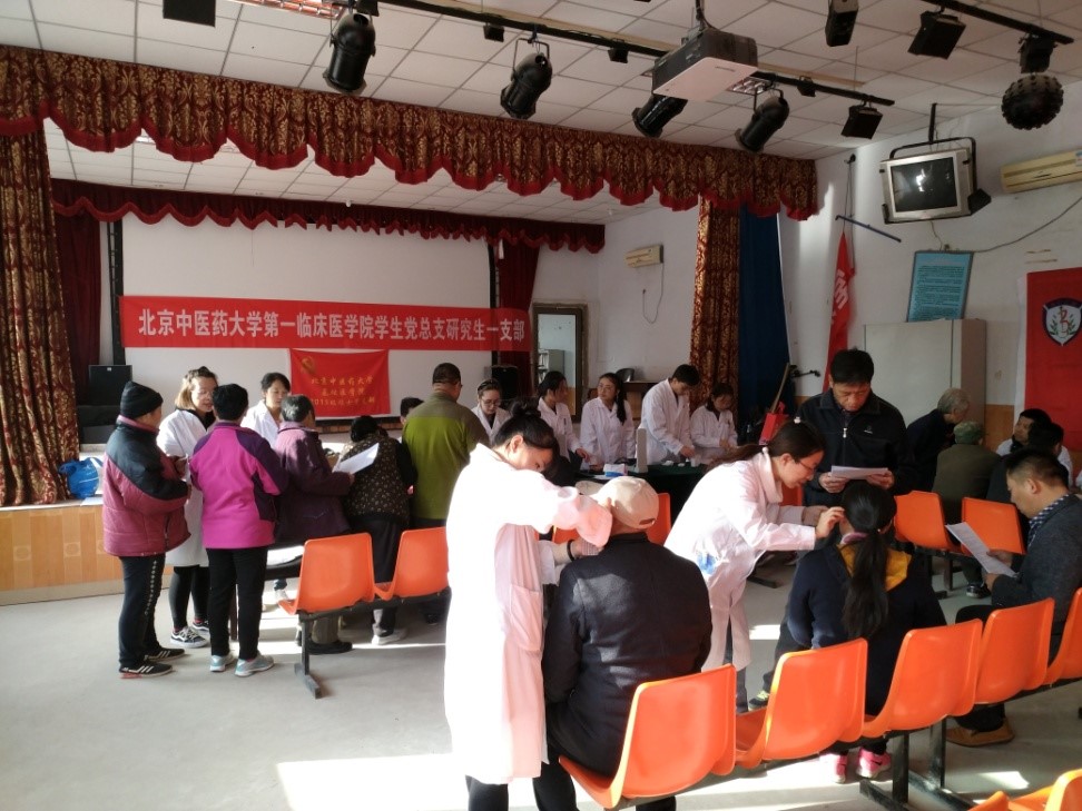 在党建项目化上,研一支部成功申报并出色完成一项校级红色1+1党支部共建项目,在北京中医药大学进行的北京市推优答辩中获得第一名的好成绩。先后为密云小石尖村的村民们开展两次义诊活动,义诊直接服务人次达189人次,发放健康宣传材料共计198份,赠送养生书籍24本,受到当地民众的欢迎。支部同志还与小石尖村老党员开展了一场座谈会。村支书结合“两学一做”和习近平总书记在庆祝建党95周年提出的“十个”不忘初心讲话精神,和大学生们进行了交流。