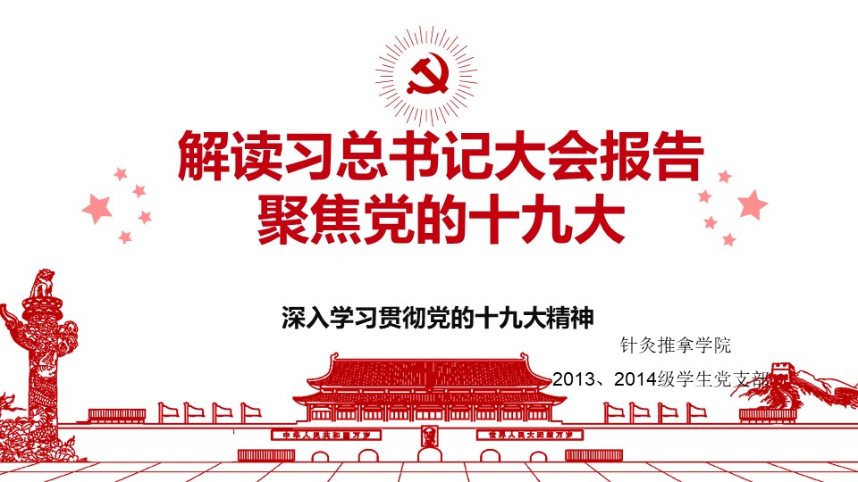 党的十九大胜利闭幕后,北京中医药大学各级党组织掀起了学习宣传贯彻党的十九大精神的热潮。学校党委组织部、党委宣传部和共青团组织共同举办了“认真学习宣传贯彻党的十九大精神,写好北中医奋进之笔——优秀党课课件评选与展播”活动。在此,我们遴选了一些内容比较丰富、设计比较精美的课件在此展出。